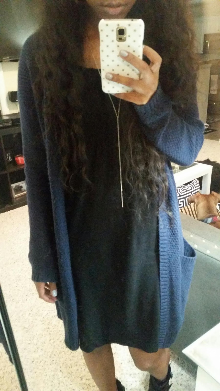My little black dress is always my go to when my brain is not functioning in the morning. Add in a over-sized cardigan and booties and you have a winner no matter what.