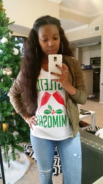 I kept it super casual for Christmas Day as it was fairly warm in the great state of Texas and I could not wait to wear this adorable tee that I got from Target. This girl had it on a few weeks back and I had to ask where she got it from and I was at Target the next day lol